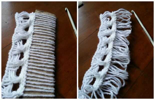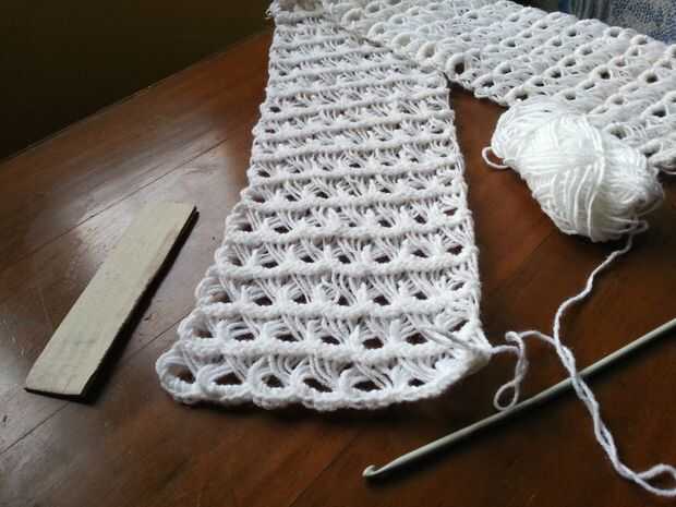 Ahora hacer la segunda fila de ganchillo de palo de escoba y continuar hasta que la bufanda alcance la longitud deseada.