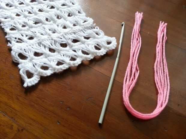 Unir las hebras de hilo, doblar a la mitad y tendrás un lazo en un extremo,