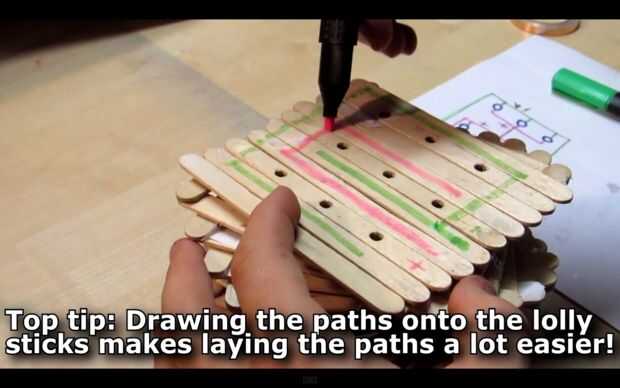 A continuación, es útil esbozar su circuito. Dibujar trazados comunes en dos colores para facilitar el seguimiento.