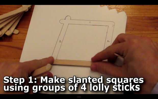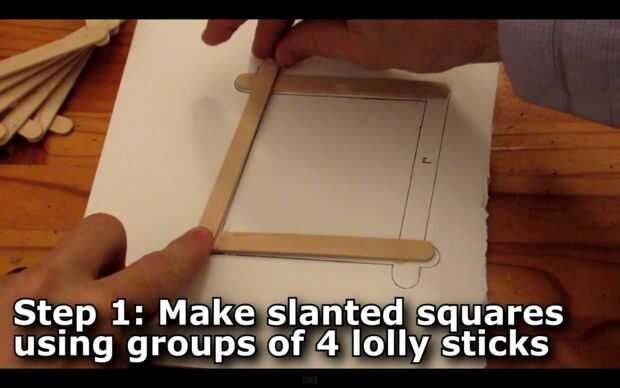 Los extremos de 2 esquinas opuestas deben superponerse perfectamente y los otros 2 esquinas opuestas deben solaparse en alrededor de 1 cm (o el extremo redondo de un palo de Polo)).