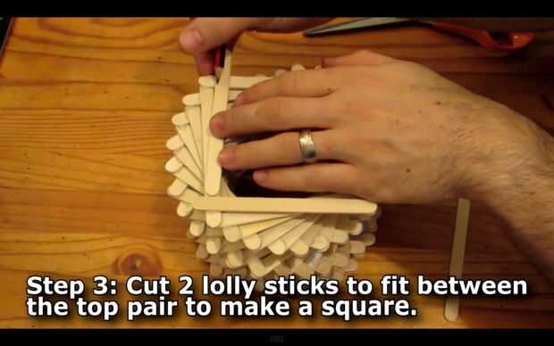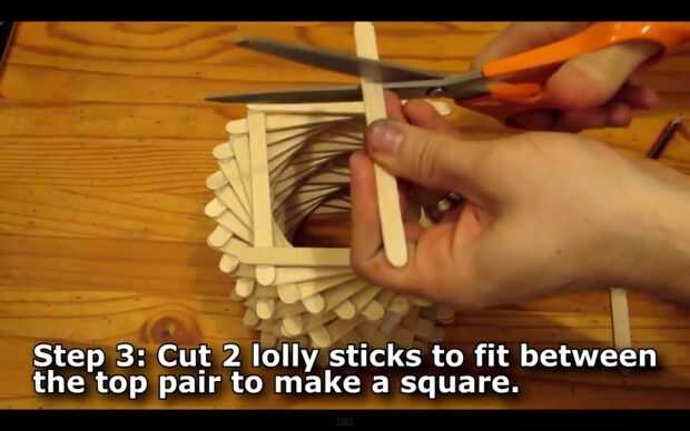 Repetir una vez más para el otro lado y use un par de tijeras para cortar los palos.