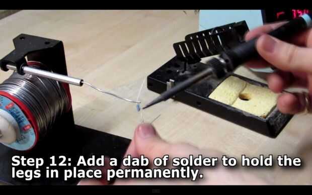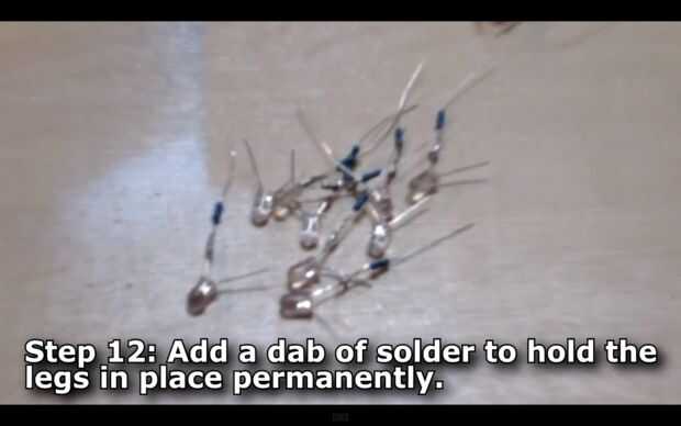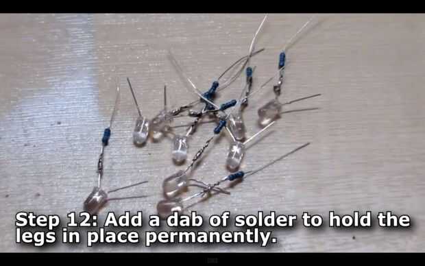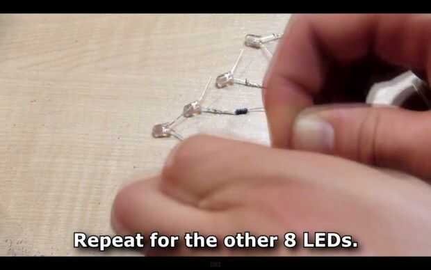 A continuación, usted querrá soldar una resistencia a la pata positiva de cada LED.