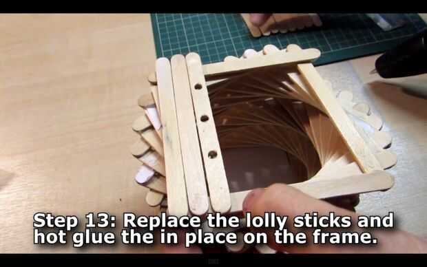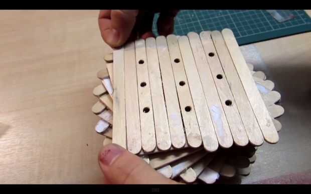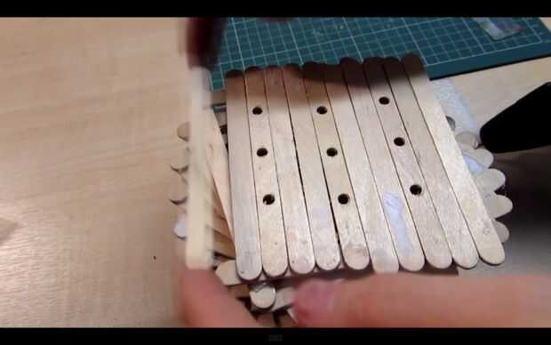 Después de pegar los palitos de polo en su lugar, debería tener una plaza de palos de polo con la agujeros aproximadamente igual distancia!