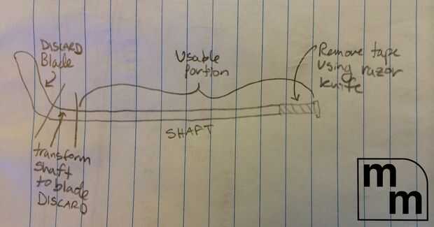 Cuando corte sus palillos, hacer que usted use solamente el eje de la palanca y cortar cualquier parte de la palanca que es formado diferentemente (es decir, el palo eje transforma del eje a la lámina del palillo. Usted quiere asegurarse de que no usar ninguna parte del palo que es diferente de la dimensión del eje).