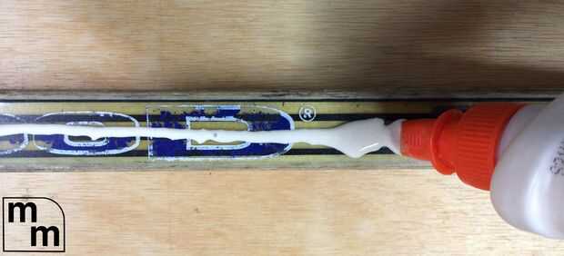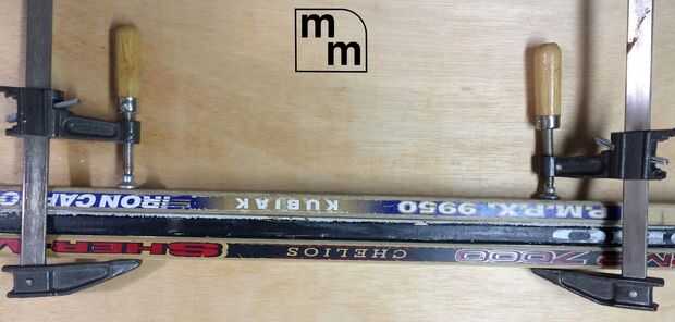 Agarrar tus dos palos a laminar, aplique cola entre sus dos palos nuevos y el crecimiento de laminado de bancada de asiento
