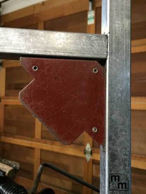 Con imanes de ángulo de 90 grados, asegúrese de que tiene sus partes alineadas correctamente. Residuos de escoria y metal se atasca en los imanes, por lo que a veces tienen sus piezas de compensado un poco. Utilice a un carpinteros o velocidad cuadrada a Compruebe sus ángulos. Es super satisfactorio soldar las piezas en ángulo de 90 grados verdadero. Pero no te preocupes, si las piezas son de un poco, todo funcionará te y no tienes que admitirlo:).