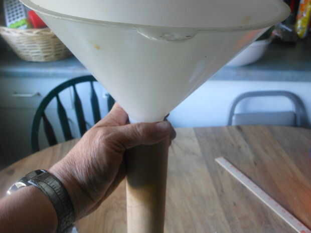 Tomar el embudo y pegarlo en el extremo abierto del tubo.