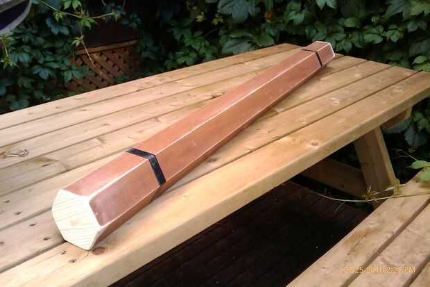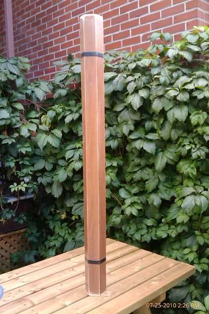 Mi versión o el palo de lluvia es un poco menos exótica. Decidí hacer de una vieja ventana de madera ciega que tenía en mi garaje desde hace años. La idea viene de este excelente video de Steve Ramsey. Reproduje su versión del palo de lluvia. Mis 2 centavos son para el reciclaje de estas antiguas persianas de madera.