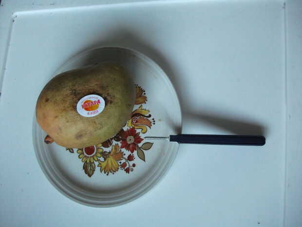 Usando un palo de mango te permitirá comer un mango sin que su mano estropeada.