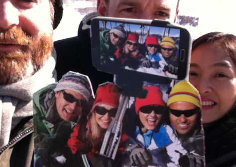 Recortar una imagen de usted mismo, o alguien que gustaría compartir tus aventuras con y clip al extremo de la estaca de signo de cola de cochino. Ahora puede tomar fotos con tu stick selfie desde una perspectiva de tercera persona, lo que le permite disfrutar de la diversión de documentar sus hazañas sin tener que posar para la cámara!