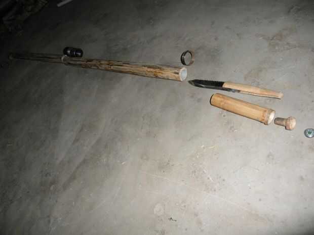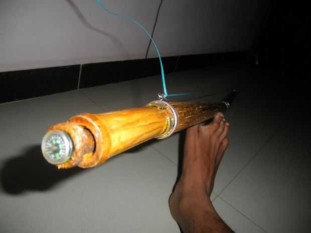 Cuchillo se reunirá en la parte superior. Así que cualquier momento podemos usarlo como está siempre presente en la mano. Para el arreglo de la lanza que tengo que hacer fuerte acoplamiento arreglo así que hacer un pequeño pedazo de roscado que se adherirá en el extremo del mango. También instalé una pequeña brújula en extremo roscado.