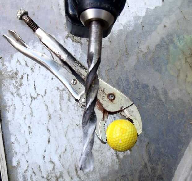 si usted tiene un tornillo de usarlo, no tengo uno así que sujeta la fruta tonto en un par de visegrips y perforó un agujero sobre a medio camino a través de la fruta dura