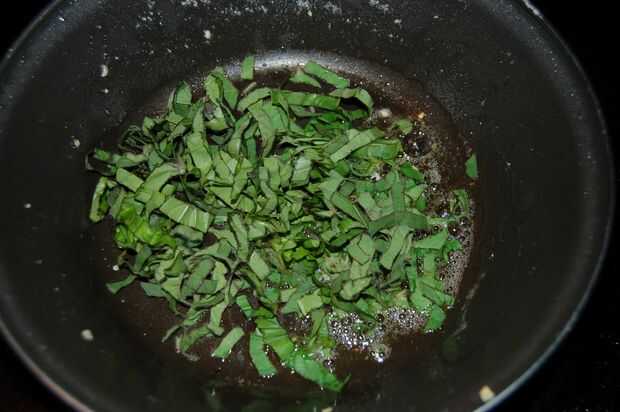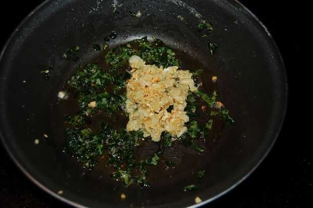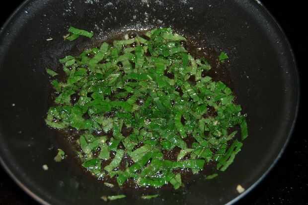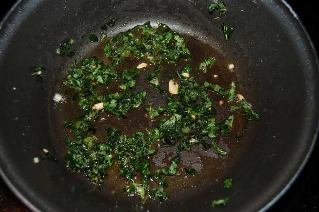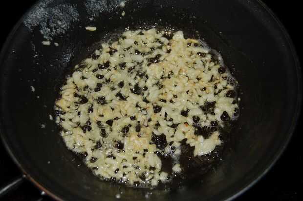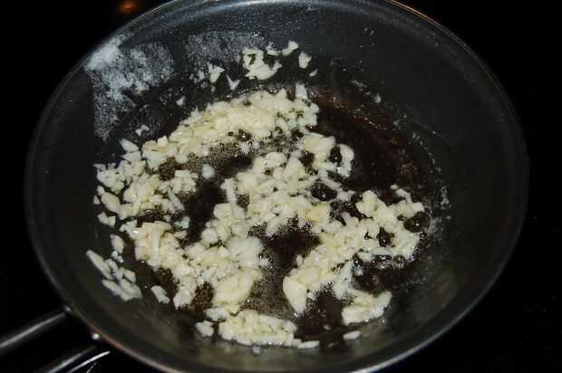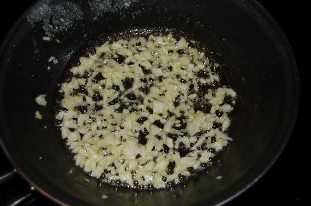 Agregar el ajo finamente picado y freír hasta que estén apenas dorados.