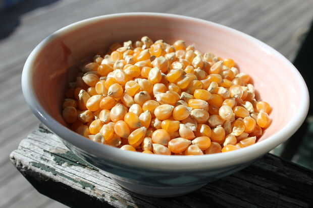 Vierta 4 cucharaditas de aceite en la olla, volcado en granos de maíz y remolino para cubrirlo con aceite. Cubra con tapa o papel de estaño. Coloque sobre fuego medio alto y observar cuidadosamente. Cuando tus granos empezar a puntear, agitar el bote para que las palomitas se levanta a la tapa y agitar los granos de maíz en el aceite caliente en la parte inferior. Siguen apareciendo hasta que la mayoría de sus núcleos estén reventados.