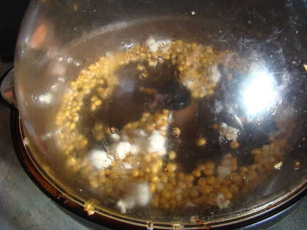 Palomitas de maíz de gelatina verde (1 / 8 paso)