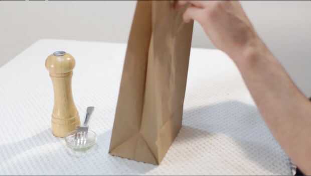Ahora sólo agregamos nuestros granos a una bolsa de papel marrón (común bolso del almuerzo aquí en los Estados Unidos). Luego doblar sobre los tiempos de top 3 o 4. Mantenerlo erguido.