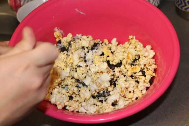esta receta realmente no podría ser más fácil - mezcla junto una bolsa de palomitas de maíz con algunos aplastados alfajores y derretido el chocolate blanco y listo - ya tienes un tratamiento ridículamente adictivo, no vas a querer compartir!1 bolsa