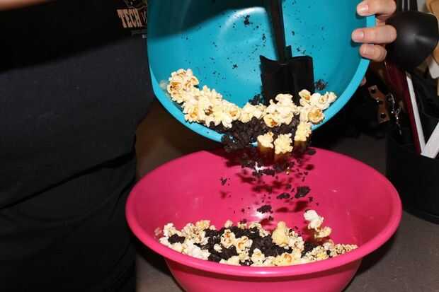 esta receta realmente no podría ser más fácil - mezcla junto una bolsa de palomitas de maíz con algunos aplastados alfajores y derretido el chocolate blanco y listo - ya tienes un tratamiento ridículamente adictivo, no vas a querer compartir!1 bolsa