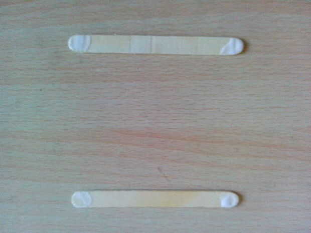 Tomar 2 sticks y aplicar fevicol en sus bordes como se muestra.