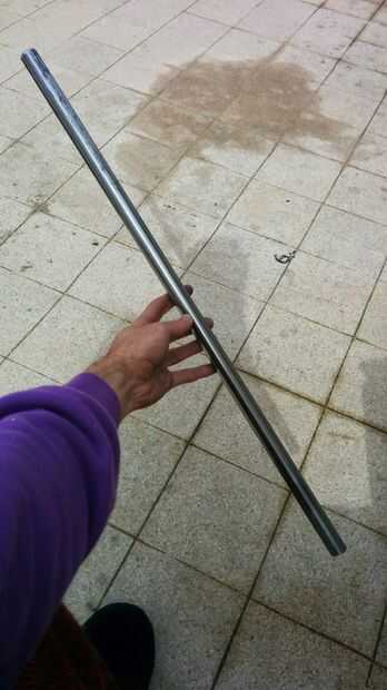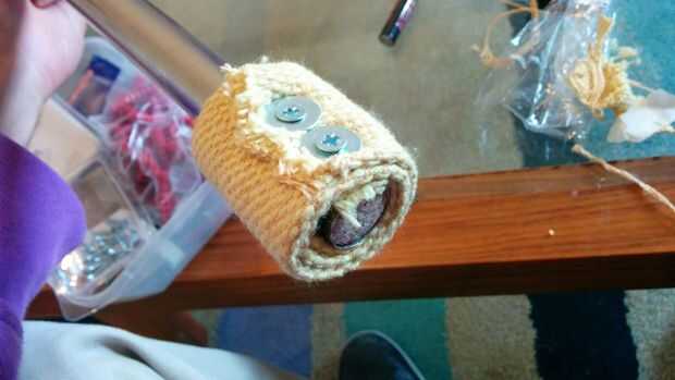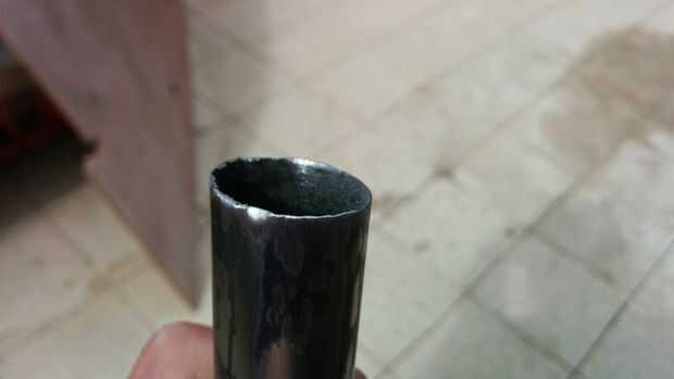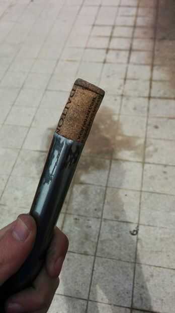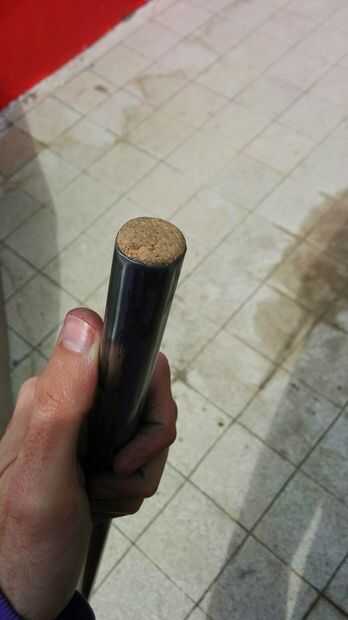Hacer 2 orificios en el tubo y el corcho en cada extremo (ver fotos) con los tornillos, asegúrese de no adelantar el corcho. Marcar la distancia de los agujeros de los extremos y la dirección para más adelante (se cubrirá con kevlar). Sacar los tornillos.