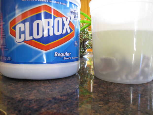 Una vez que ha separado sus huesos encontrar un bote o cubeta y llenarla con el clorox.  Dejó los huesos reposen al menos unas horas, te sugiero dejarlos a remojo durante la noche.  Después de thay se han vuelto blancas, extienda los huesos para secar.