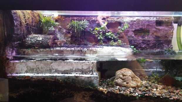 Este es mi paludario. He creado esto para peces de agua dulce de casa junto con algunos fauna y flora. Pondré algunas ranas de dardo venenoso en cuando he terminado poniendo en la flora.