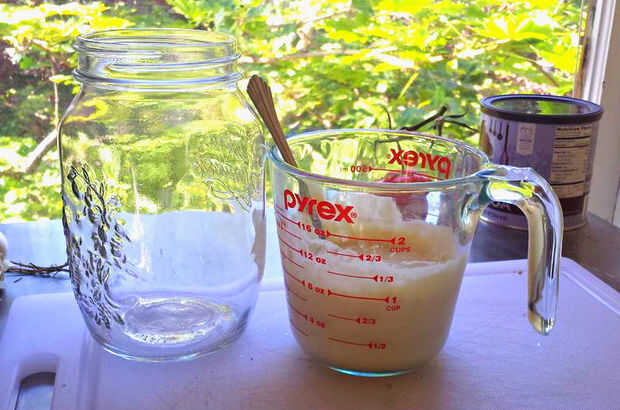 En este punto, la mezcla de arranque puede han subido algunos y puede haber unas pocas burbujas. Si usted nota cualquier fermentación o no, descartar la mitad de la mezcla (o dar a un amigo). A continuación usted será:
