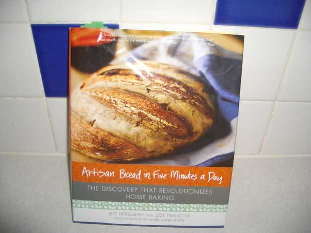 Todo el crédito para esta receta y la técnica va a Jeff Hertzberg y Zoe Francois, autores de "Artesanal pan en cinco minutos un día: el descubrimiento que revoluciona la casa horneando" St. Martin Press, 2007, ISBN-13:978-0-312-36291-1, ISBN-10:0-312-36291-9, y es usada con su permiso.