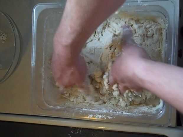La masa será muy flojo y húmedo. Esto es justo lo que quieres. Que tenga que añadir un poquito más de agua para obtener la harina mezclada.