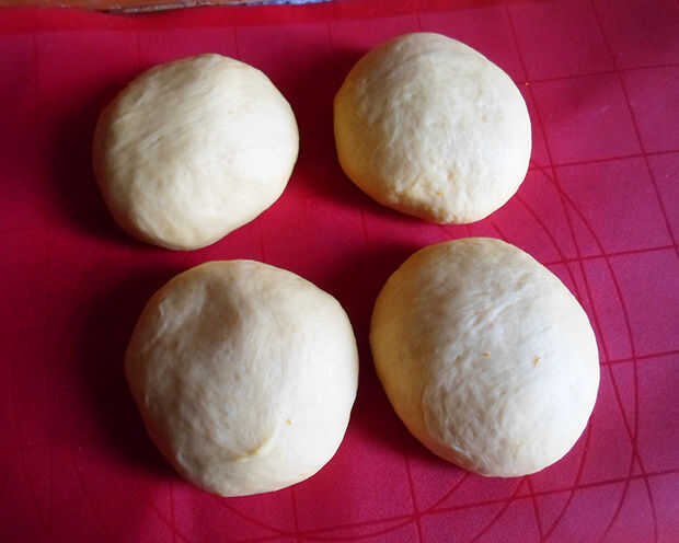 Hacer un disco con cada una de las 4 bolas con un rodillo.