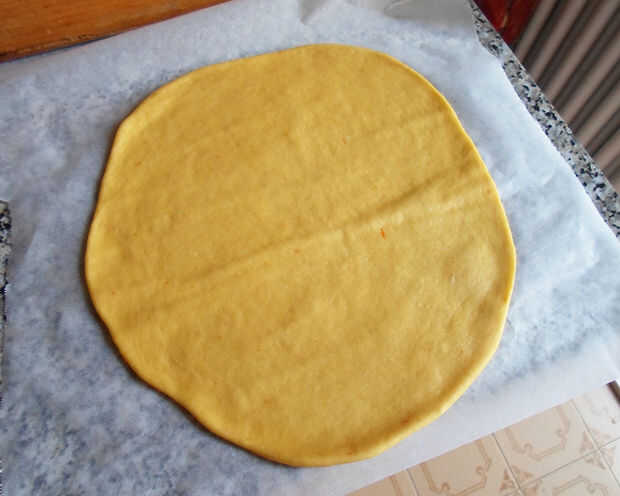 Los discos deben ser un poco más pequeños que el molde que usarás para hornear su pan brioche en. Si vas a usar un 28cm (11 pulgadas) de la lata de la hornada, hacer los discos con un diámetro de unos 25cm (9,84 pulgadas).