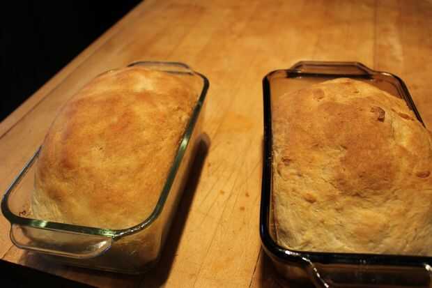 Retire el pan del horno y cacerola.
