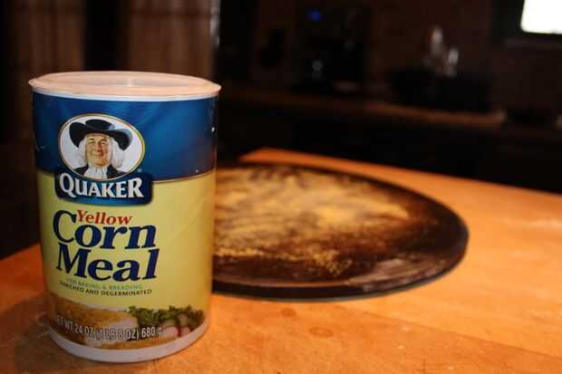 He puesto el pan en mi pizza piedra/cerámica de gres que espolvoreado con harina de maíz.