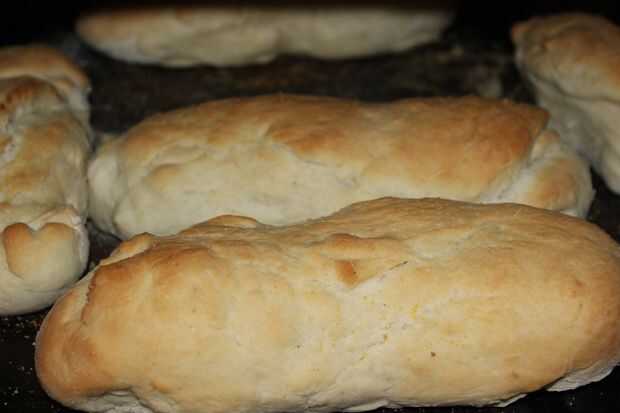 Yo de la mano en la masa en 6 panes más pequeños.