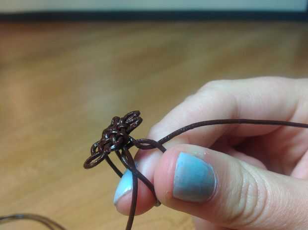 Esto también se llama un nudo cuadrado y es bastante común hacer pulseras macreme fuera de ellos. Hay más en profundidad instructables sobre cómo esta parte si usted es todavía confuso.