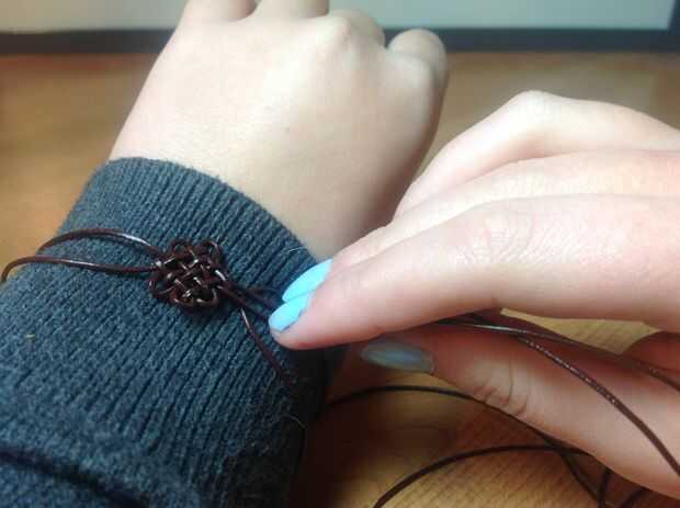 Usted puede hacer este diseño para un anillo o una pulsera. A la medida para hacer una pulsera, asegúrese de que el lazo largo que se basaba en la diagonal puede envolver completamente alrededor de su muñeca de la misma manera como la foto. Siempre deje una pequeña habitación por si acaso. Si usted está midiendo para un anillo, asegúrese de que el lazo que envuelve todo el camino alrededor de tu dedo. El tamaño es muy importante, así que asegúrese de que el bucle es la longitud perfecta. Apriete el lazo de la misma manera que apretó los lazos otros 6.