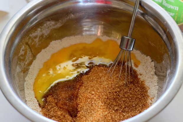 Instrucciones de la receta: Precalienta el horno a 350 grados; en un tazón grande bate los ingredientes secos, agregar el azúcar, el huevo batido y aceite. Mezclar todos los ingredientes, añadir el agua mezclando rápidamente hasta que toda el agua se incorpora a la masa. Coloque en un molde engrasado y al horno durante 40-65 minutos. El pan se hace una vez que un diente se inserta en el centro y salga limpio. Servir con helado de vainilla o un vaso de leche con chocolate.
