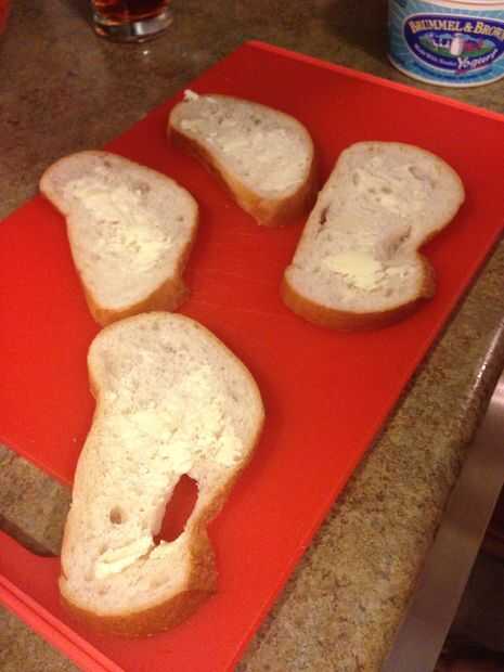 De mantequilla encima de los panes :) para que tengan un sabor agradable :)