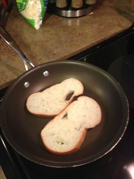 Ok ahora tostar los panes en el lado de la mantequilla hacia abajo