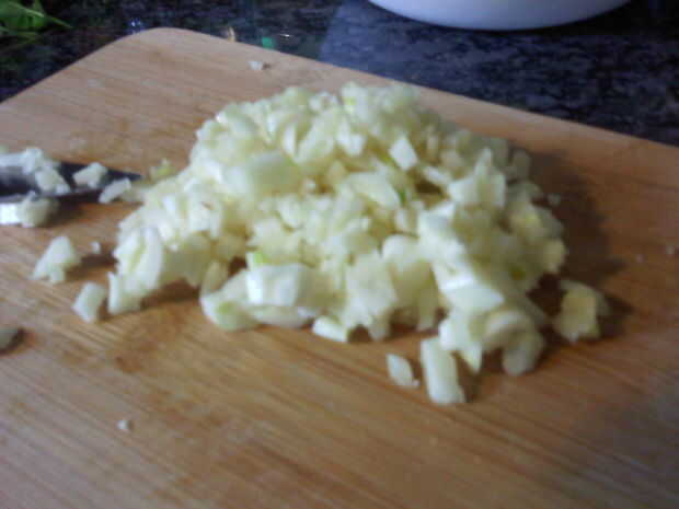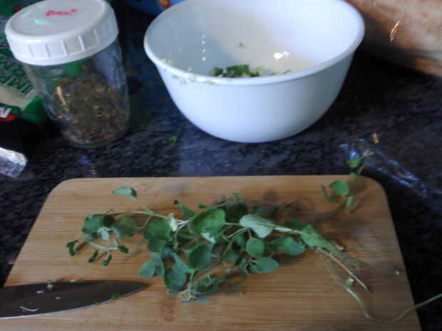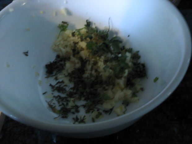 Picar el ajo y hierbas (usé albahaca, orégano y perejil... esta vez)