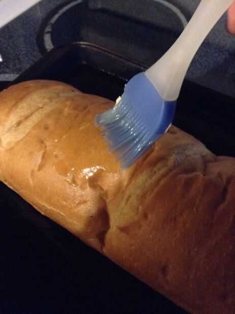 Paso 2: Derretir la mantequilla de ajo y cepillo en la parte superior del pan.