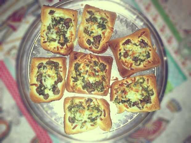 .Paso 1: ingredientes -1 barra de pan (yo usé francés)-Ajo mantequilla (yo usé 4 cucharadas de sazonador de ajo y mantequilla)-8 onzas de queso de ladrilloPaso 2: Derretir la mantequilla de ajo y cepillo en la parte superior del pan..Paso 3: Una vez