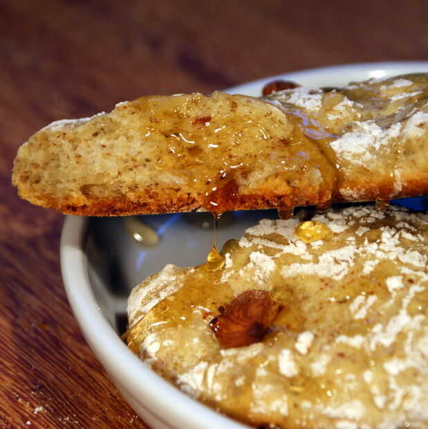 Si prefieres el lado dulce: servir con miel o hacer un glaseado mezclando el azúcar impalpable y el licor de amaretto. Ambos trabajan muy bien.
