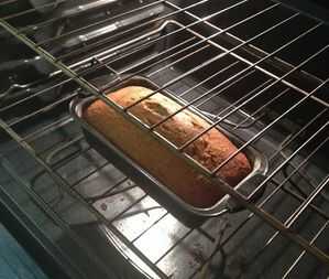 Después de una hora de cocción, sacar el pan de banana al horno. Para este paso, utilice dos manoplas para sacar el pan de plátano al horno.