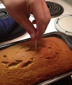 Debe introducir aproximadamente la mitad de los palillos de dientes en la parte superior del pan de plátano. Si el palillo sale será masa en él, entonces usted tendrá que colocar el pan de plátano por 5 minutos más. Repita este paso hasta que el palillo salga limpio.