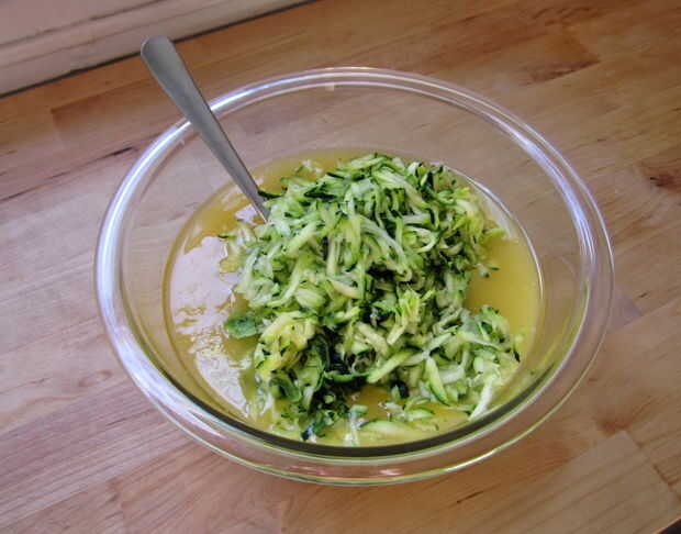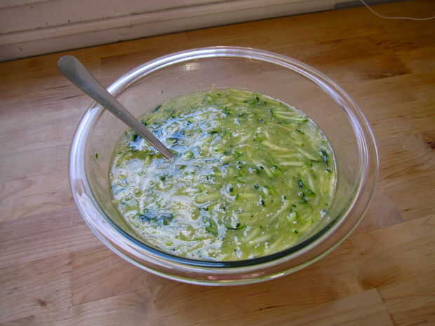 http://www.savynaturalista.com/2013/09/17/gluten-free-zucchini-bread/Receta de pan de calabacín libre de gluten:2 tazas sin gluten para hornear mezcla1 1/2 taza de calabacín rallado (lleno)3 huevos1 taza derretido mantequilla batida (salado)1/4 taza