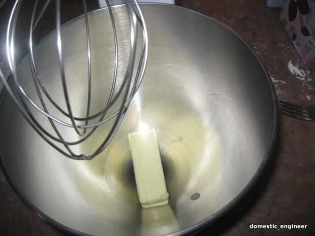Crema la mantequilla y el azúcar hasta que quede esponjoso, unos 3-5 minutos a velocidad media.