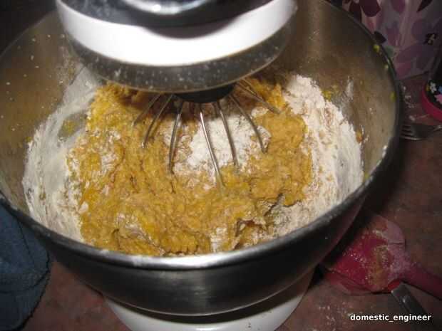 Cierna todos los ingredientes secos. Añadir a la mezcla de calabaza y combinar.