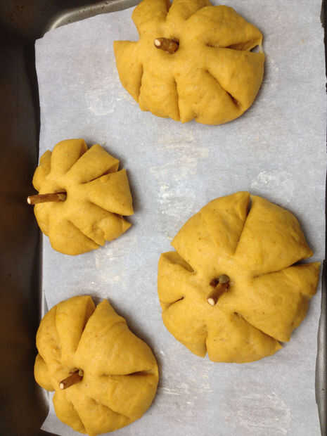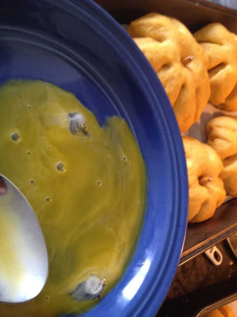 Pincelar con yema de huevo y hornear a 350 F por 20 minutos