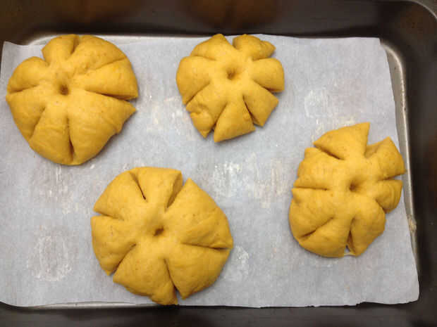 Colocar los bollos en hornear y deje reposar nuevamente durante 45 minutos
